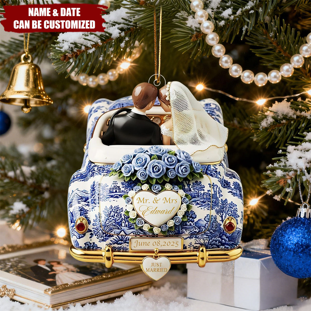 Just Married Toile de Jouy - Personalized Acrylic Ornament, Wedding Gifts For Couple