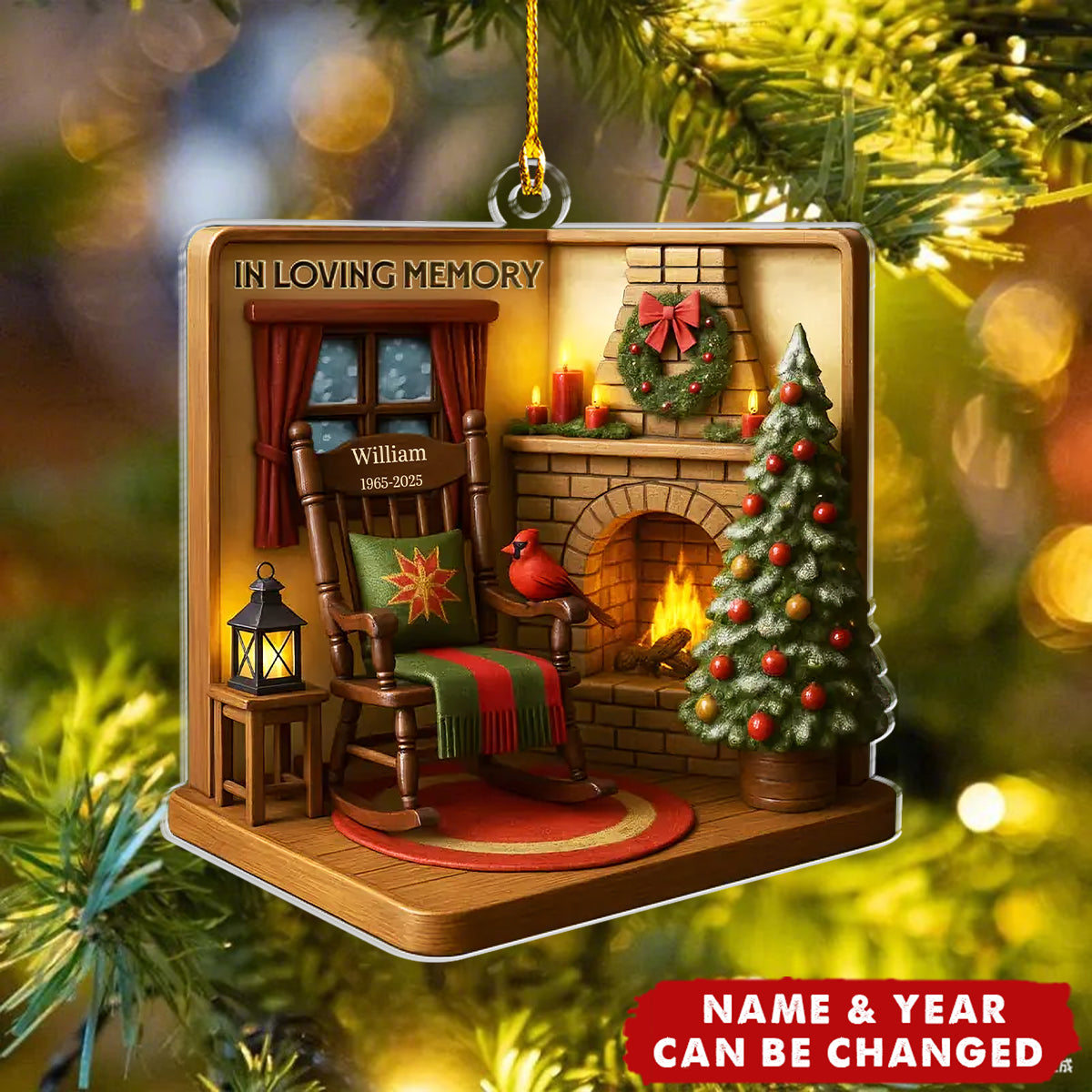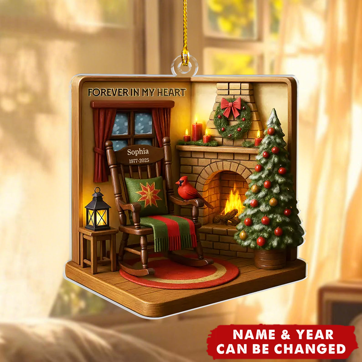 Personalized with their name, it’s a gentle reminder that those we cherish are never truly gone—their love shines through every memory, just like light dances through this delicate acrylic design. Hang it on your tree or window, where their presence feels brightest.
